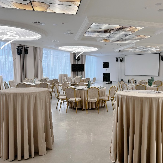 Зал-трансформер класса премиум, площадью 800м², располагается в самом сердце Нижнекамска, при отеле c одноименным названием , и приглашает вас провести на высшем уровне уникальное торжество, будь то изысканная свадьба, пышный день рождения или статусный корпоративный вечер, вместимостью до 250 персон в формате банкета и 400 персон в формате фуршета.